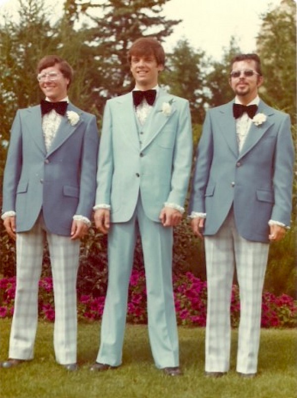 Jimmy and I as best men at the Nigel Goodsir and Linda Melnyk wedding, 1975.
